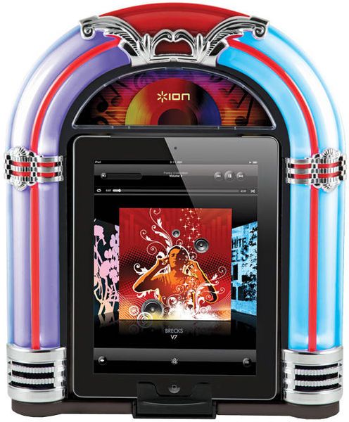 ION revisite le mythique Juke-Box des années Yé-Yé pour en faire le complément néo-rétro indispensable de votre iDevice. Avec son coffret bois et ses néons lumineux en façade, c'est tout le charme des Fifties qui s'invite chez vous.