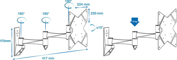 Le support mural NorStone Jura A2342-RS360X pour écran plat est un solide support en aluminium conçu pour permettre une installation murale de votre téléviseur. Fin et discret, le support mural NorStone Jura A2342-RS360X constitue une solution idéale pour intégrer votre écran de manière parfaitement esthétique dans votre intérieur. Le support pour téléviseur NorStone Jura A2342-RS360X est compatible avec les écrans de 33 à 68 cm de diagonale et dont le poids n'excède pas 25 kg. Le support NorStone Jura A2342-RS360X est orientable à 180° grâce à ses trois axes et inclinable à +/- 30°, ce qui permet d'orienter votre téléviseur facilement de manière à profiter pleinement de l'image où que vous soyez dans la pièce.