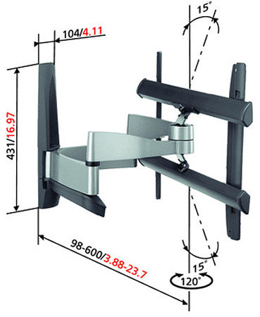 Le support mural orientable Vogels EFW-6345 Plus pour écran plat permet d'orienter très confortablement avec une seule main votre écran sur une amplitude horizontale de 120 degrés de gauche à droite. Grâce au support Vogels EFW-6345 Plus l'écran peut se décoller du mur pour être ainsi plus proche du spectateur. Il est conçu pour que l'écran ne puisse jamais entrer en contact avec le mur.