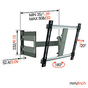 Le support pour écrans plats Vogel's Thin 245 a été conçu pour installer les modèles LED et Plasma. Très fin, il positionne le téléviseur à 15 mm du mur et favorise ainsi une installation élégante. Le support pour écrans plats Vogel's Thin 245 est compatible avec les téléviseurs de 66 à 140 cm, d'un poids maximal de 18 kg. Sa compatibilité avec les fixations Vesa le rend particulièrement polyvalent et son niveau à bulle facilite son installation. Le support pour écrans plats Vogel's Thin 245 est inclinable sur 20° et orientable sur 180° et autorise ainsi un positionnement très souple du téléviseur. Enfin, un passe-câbles permet de dissimuler la connectique utilisée.