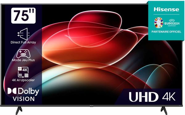 Le téléviseur Hisense 75A6K vous fait profiter du sport, des programmes TV et des films en UHD 4K HDR sur très grand écran avec des couleurs riches et une belle fluidité d'image.