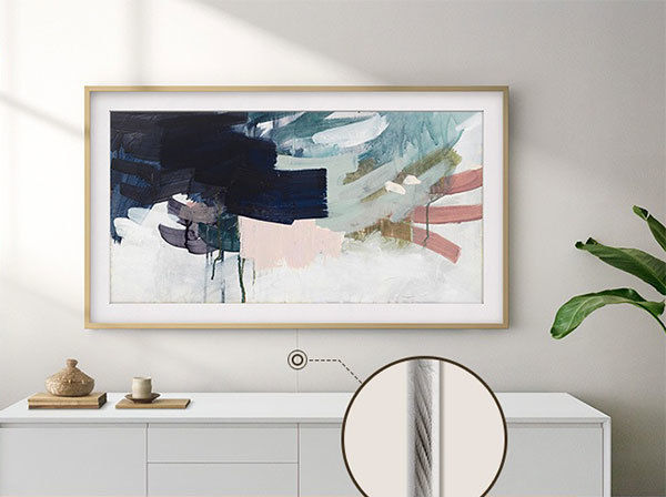 Comme la connectique du téléviseur Samsung The Frame QLED 43" est déportée dans un boîtier externe (One Connect), un seul câble part de l'écran. L'intégration est plus facile et plus discrète.