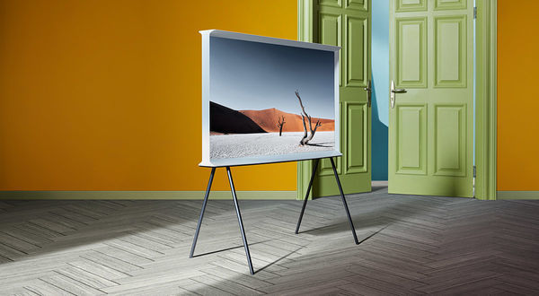 Le téléviseur Samsung Serif QLED 55" échappe à la quête obsessionnelle de l'écran ultra-fin et se rapproche d'un véritable objet de décoration et d'ameublement par ses formes et sa présence. Il est conçu de telle sorte qu'on puisse le poser partout, tourner autour de lui et le manipuler aisément. Les frères Bouroullec ont dessiné ce téléviseur Samsung Serif QLED 55" avec pour objectif de rendre simples et accessibles ses fonctions, depuis l’interface utilisateur aussi bien qu'avec la télécommande. "Comme des typographes dessinant une lettre, nous avons étudié aussi bien l’objet que son interaction avec l’environnement autour de lui" précisent Ronan et Erwan Bouroullec. De profil, le téléviseur Samsung Serif QLED 55" adopte la forme de la lettre "i" majuscule, sa silhouette fine s’évasant vers le haut pour former une surface plane comme une petite étagère.