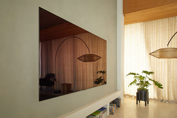 Ultrafin avec à peine 2 cm d'épaisseur, le téléviseur LG OLED55GX est conçu pour être plaqué contre le mur. Il est pour cela livré avec un support mural dédié. Le mode Galerie permet d'afficher des photos et des reproductions de toiles de maîtres.