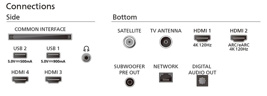 HDMI 1/2 : HDMI 2.1 pleine bande passante 48 Gbits/s, jusqu'à 4K 120 Hz