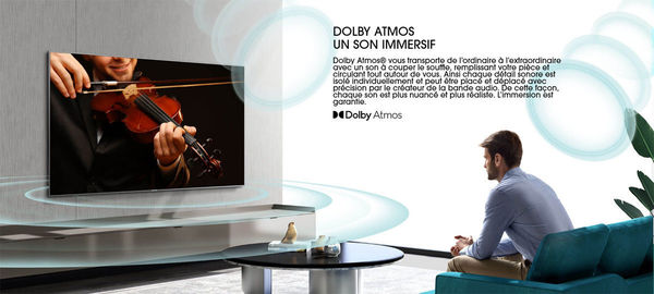 La TV Hisense 50U72QF intègre un système audio compatible Dolby Atmos pour élargir le champ sonore autour des spectateurs afin d'offrir un spectacle plus immersif.