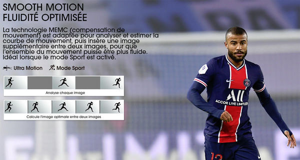 Le téléviseur 4K Hisense 50U72QF adopte la technologie MEMC qui permet d'obtenir des images plus fluides et plus nettes sur les actions lors des matchs.