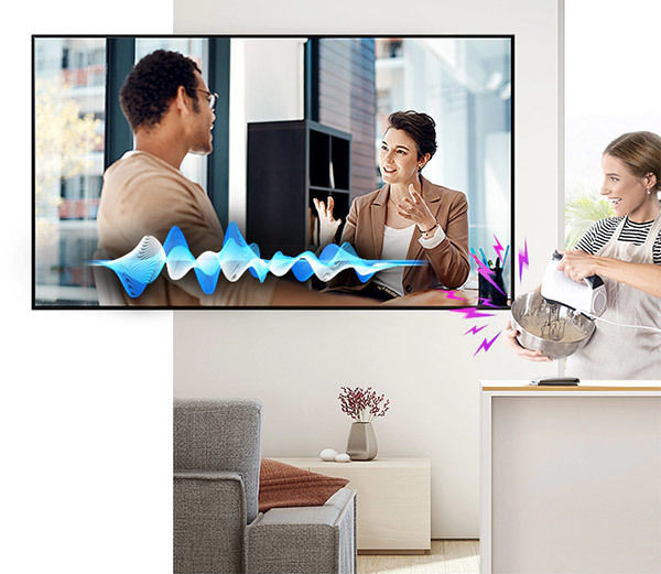 La fonction AVA du téléviseur Samsung QE65Q80A augmente automatiquement le volume sonore des fréquences vocales lorsqu'une augmentation du bruit ambiant est détectée.