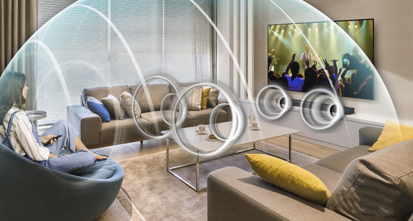 La barre de son Samsung HW-Q60T embarque pas moins de neuf haut-parleurs, dont certains sont disposés sur la face supérieure de la barre pour la restitution des effets verticaux. Ceux-ci exploitent la technologie Samsung Acoustic Beam qui diffuse les effets surround depuis le sommet de la barre de son vers le plafond. Ce dernier réfléchit alors les sons vers les spectateurs, produisant un son surround enveloppant pour immerger les spectateurs dans l'ambiance sonore du programme visionné. De plus, la barre de son Samsung HW-Q60T adopte un véritable canal central, spécifiquement dédié à la reproduction des dialogues pour qu'ils soient plus distincts et compréhensibles.