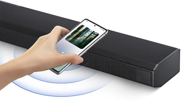 La barre de son Samsung HW-Q700A dispose d'un récepteur Bluetooth pour diffuser sans fil la musique lue par un smartphone.