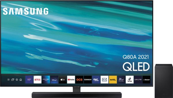 Ce pack comprend la TV QLED 4K Samsung QE75Q80A et la barre de son 3.1.2 canaux Samsung HW-Q700A.