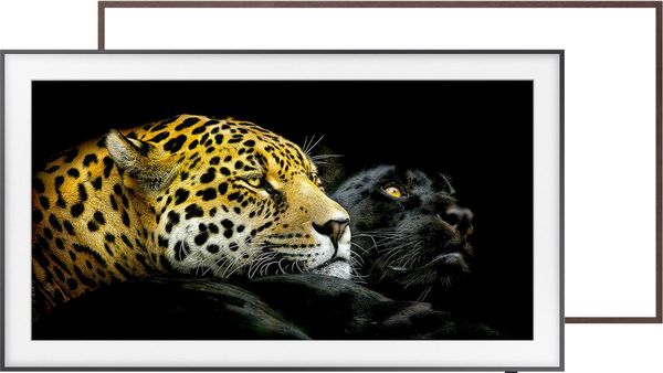 Le design particulièrement réussi du Samsung The Frame 50" QLED en fait un véritable élément de décoration puisqu'il peut être accroché au mur tel un véritable tableau grâce à son support mural extra plat fourni. Il est par ailleurs livré avec une paire de pieds pour être installé de manière plus classique sur un meuble TV. L'habituelle connectique est déportée dans un boîtier One Connect externe avec un unique câble quasiment transparent qui le relie à l'écran. Côté design toujours, le cadre interchangeable permet d'adapter facilement le téléviseur à sa décoration intérieure (cadre noir fourni, cadres complémentaires vendus séparément). Contrôleurs WiFi et Bluetooth, port Ethernet, protocole DLNA et accès au service Netflix et Prime Video complètent la panoplie de fonctions offertes par ce téléviseur Samsung UHD 4K haut de gamme.