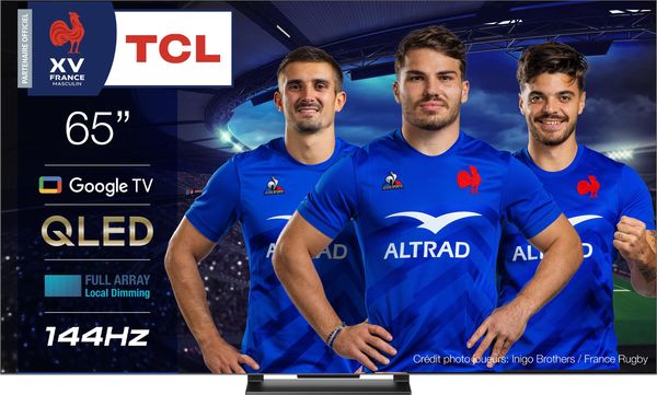 Le TCL 65QLED870 (65C74) est un grand téléviseur UHD 4K de 164 cm de diagonale équipé de la technologie QLED (Quantum Dots). Il dispose d'une dalle LCD 10 bits compatible Dolby Vision IQ et HDR10+ pour des images aux couleurs intenses, lumineuses et bien contrastées. Cette Smart TV utilise l'interface Google TV, intègre Google Assistant et dispose d'un module Chromecast pour diffuser sans fil des contenus depuis un smartphone, une tablette ou un ordinateur. Elle offre également un large choix de jeux et d'applications tels que YouTube, Netflix, Prime Vidéo, Disney+, etc. Les prises HDMI 2.1 de ce téléviseur sont compatibles avec les jeux vidéo jusqu'en 4K 144 Hz et les consoles de jeux sont automatiquement détectées pour basculer en mode jeu et garantir une faible latence. Enfin, la section audio compatible Dolby Atmos et DTS Virtual:X pour une expérience immersive au cœur des bandes son des films et des jeux vidéo.