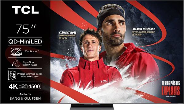 Fleuron du fabricant chinois, le grand téléviseur TCL 75Q8C est un modèle UHD 4K de 189 cm de diagonale qui dispose des technologies exclusives QLED Pro (Quantum Dot nouvelle génération) et Mini LED pour une couverture colorimétrique étendue et une uminosité très élevée, avec un contraste optimal. Tous les contenus HDR Dolby Vision et HDR10+ profitent d'une très belle qualité d'image, même en conditions d'éclairage ambiant grâce au capteur de luminosité intégré (ajustement automatique de l'image). Le TCL 75Q8C s'équipe de Google TV et accède à tous les services de streaming. Les joueurs profitent pour leur part d'une réactivité et d'une fluidité optimales jusqu'en 4K 144 Hz, avec la prise en charge des fonctions ALLM, VRR et AMD FreeSync Premium Pro. Enfin, sa section audio 4.2.2 canaux compatible Dolby Atmos est signée Bang & Olufsen pour une expérience optimale.