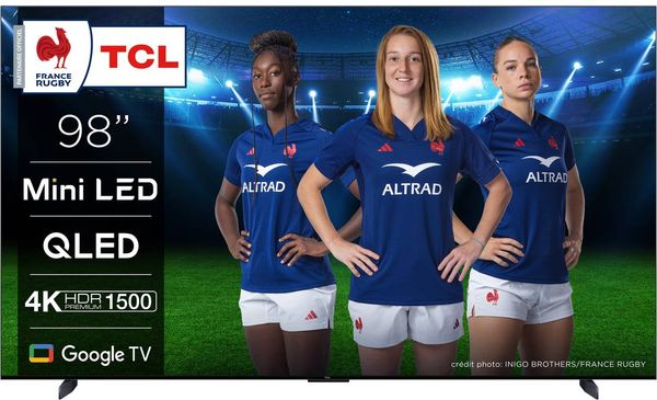 Le téléviseur UHD 4K TCL 98MQLED80 (98C805) propose une multitude de fonctionnalités avancées et constitue un choix optimal pour les amateurs de cinéma, de séries, de jeux vidéo et de contenu en streaming. Sa technologie QLED, associée à un rétroéclairage mini-LED, garantit une très belle qualité d'image avec des couleurs vives et profondes, une luminosité allant jusqu'à 1500 nits et un contraste optimal pour les contenus en HDR Dolby Vision et HDR10+. Les joueurs trouveront également leur bonheur grâce aux ports HDMI 2.1 compatibles avec les jeux 4K 120 Hz et même 144 Hz, ce qui en fait un choix idéal pour les consoles de jeu et les PC. L'interface Google TV, accompagnée de Google Assistant et d'un module Chromecast, ainsi que la prise en charge de nombreuses applications de streaming, offrent une expérience de divertissement complète. Enfin, avec son design élégant et sa finition en métal brossé, le téléviseur TCL 98MQLED80 (98C805) s'intègre harmonieusement dans n'importe quel espace de vie.