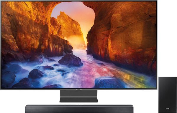 Le téléviseur UHD 4K Samsung QLED QE75Q90R est ici associé à la barre de son Samsung HW-Q80R et son caisson de basses sans fil pour offrir aux spectateurs un spectacle unique avec une grande image UHD 4K et un son surround 5.1.2 compatible Dolby Atmos et DTS:X.
