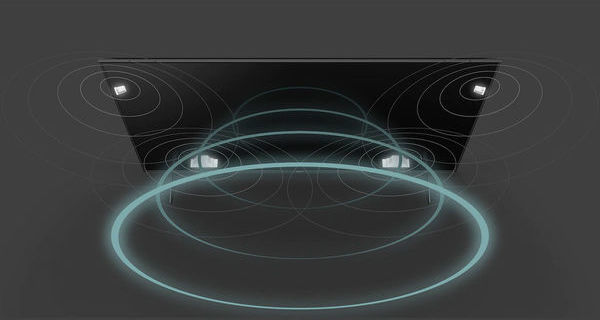 La technologie Acoustic Multi-Audio du téléviseur Sony KD-55XH9096 s'appuie sur des haut-parleurs complémentaires à l'arrière de la dalle pour diffuser un champ sonore spatialisé et faire correspondre le son à ce qui se déroule sur l'écran.
