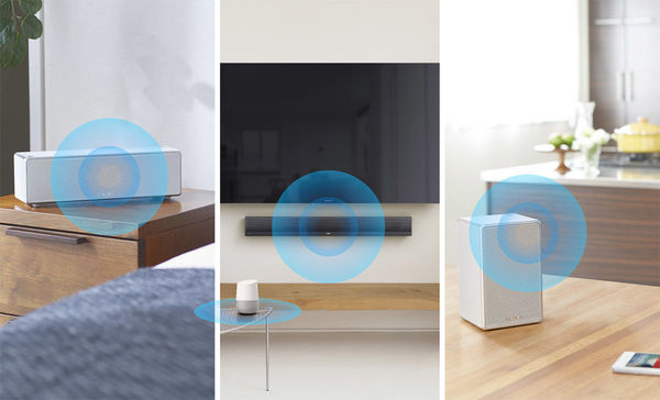 La barre de son Sony HT-ZF9 est compatible avec le système multiroom Sony SongPal. Elle peut donc diffuser une musique de manière synchronisée avec d'autres produits Sony compatible placés dans les autres pièces de la maison. Vous pouvez également choisir d'écouter une musique différente dans chaque pièce.