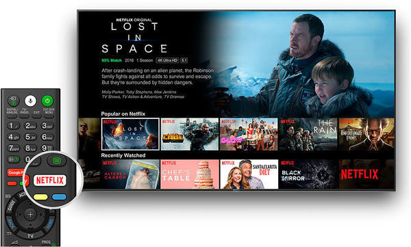 Le très grand téléviseur UHD-4K Sony KD-75XH8096 intègre l'application du service de vidéos à la demande Netflix. La télécommande du téléviseur dispose ainsi d'une touche dédiée pour offrir un accès direct au service. Ce très grand téléviseur est également capable de reprendre la lecture d'un film ou d'une série du service rapidement après un démarrage. Ainsi, le téléviseur UHD-4K Sony KD-75XH8096 bénéficie du label Netflix recommanded TV (téléviseur recommandé), certifiant une compatibilité optimale avec ce service de vidéo en ligne. Le téléviseur permet également d'accéder à de nombreuses plateformes de vidéo en ligne comme YouTube, Dailymotion ou encore Vimeo.