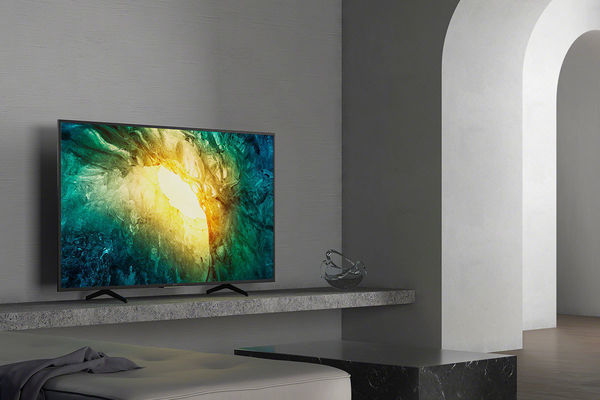 Le téléviseur Sony KD-75XH8096 dispose d'une dalle LCD à bords très fins. Son design aux lignes légères facilite son intégration.