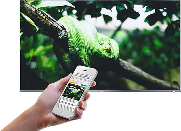 Grâce au WiFi et à la technologie Google Cast, il est possible d'afficher sans fil l'image du smartphone sur l'écran du téléviseur TCL 50DP660.
