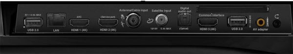 La connectique du très grand téléviseur TCL 75P718 comprend trois prises HDMI 2.0b (HDCP 2.2) avec prise en charge de la fonction de retour audio ARC sur l'entrée HDMI 1. Il possède également 2 ports USB 2.0 destinés à la lecture de contenus multimédia. La connectivité réseau est possible via un câble Ethernet ou en WiFi. Enfin, en plus de la sortie audio numérique optique permettant de lui relier une barre de son ou un ampli home-cinéma, le téléviseur TCL 75P718 possède une prise casque.