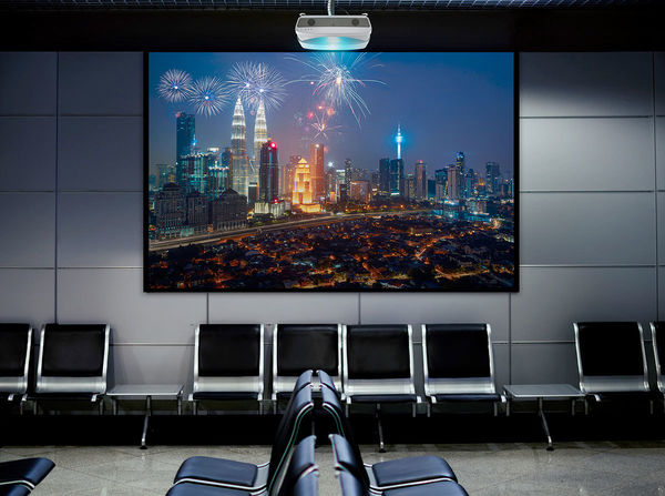 La lampe laser du vidéoprojecteur Viewsonic LS831WU est particulièrement puissante, assurant aux images projetées une luminosité de 4500 lumens. Il est donc possible de projeter un très grande image et de profiter de la vidéoprojection dans un environnement lumineux. Le vidéoprojecteur Viewsonic LS831WU peut ainsi être utilisé dans une boutique, une galerie marchande ou un hall d'exposition pour projeter du contenu informatif ou promotionnel. C'est d'autant plus facilement envisageable qu'il peut projeter en mode portrait des images plus hautes que large : plans, affiches publicitaires, menus animés...