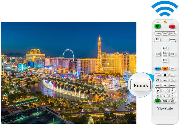 Le contrôle de la mise au point de l'image est directement intégré à la télécommande du projecteur Viewsonic LS831WU.