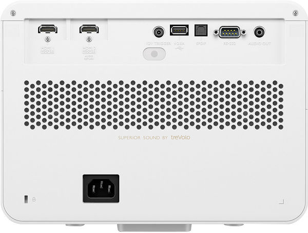 La connectique du vidéoprojecteur BenQ X1300i comprend deux entrées HDMI compatibles 4K HDR (HDCP2.2) ainsi qu'une sortie audio (mini-jack) et une sortie audio optique. Le port USB alimenté peut quant à lui être utilisé pour alimenter le récepteur d'un système de transmission HDMI sans fil comme le Marmitek TV Anywhere Wireless HD ou le Optoma WHD200.