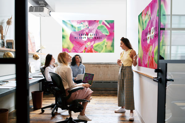 La vidéoprojecteur PT-VMZ60 dispose d'une luminosité très puissante (6000 lumens), ce qui lui permet de projeter une très grande image en HD (1920 x 1200 pixels) restant lisible dans n'importe quelle situation, même lorsque la pièce est fortement éclairée, avec notamment des rayons directs. Dans le cadre d’une présentation en entreprise ou pendant un cours, par exemple, il n’est donc pas nécessaire d'assombrir la pièce pour percevoir avec netteté le contour des images et leurs couleurs.