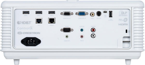 Très étendue, la connectique du vidéoprojecteur Viewsonic LS800HD comprend notamment 3 prises HDMI 1.4 et un port RJ45 HDBaseT.