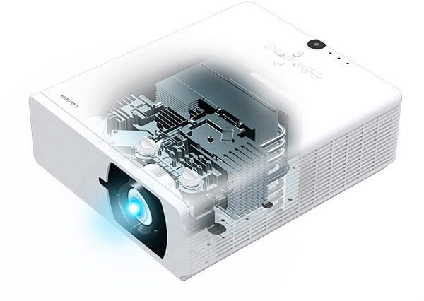La lampe laser du vidéoprojecteur Viewsonic LS800HD offre une longévité sans commune mesure avec les traditionnelles lampes UHP, puisqu'elle peut fonctionner jusqu'à 30000 heures. Un autre atout de la source lumineuse laser phosphore est son allumage et son extinction quasi instantanée, ainsi que la possibilité de le laisser fonctionner 24h/24 sans risque. Il est donc possible d'envisager de très longues séances de projection sans crainte que la lampe et le vidéoprojecteur ne surchauffent. De plus, la source lumineuse et tout le module optique sont montés dans un châssis scellé et étanche IPX6. L'humidité et les moisissures ne viendront pas ternir la qualité des optiques avec le temps.