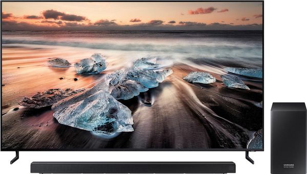 Le téléviseur QLED UHD 8K Samsung QE65Q950R est ici associé à la barre de son Samsung HW-Q60R et son caisson de basses sans fil pour vous offrir une expérience audiovisuelle exceptionnelle grâce à une image très haute résolution UHD 8K et un son surround 5.1.