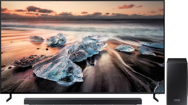 Le téléviseur QLED UHD 8K Samsung QE75Q950R est ici associé à la barre de son Samsung HW-Q70R et son caisson de basses sans fil pour vous offrir une expérience audiovisuelle exceptionnelle avec une image très haute résolution UHD 8K et un son surround spatialisé des bandes son Dolby Atmos et DTS:X.