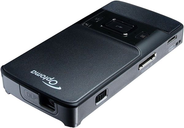 De la taille d'un téléphone portable, ce vidéoprojecteur de poche doté de la technologie de projection DLP Texas Instruments adopte un système d'éclairage à LED affichant une durée de vie de 20 000 heures ! Simple d'emploi, ce Pico-projecteur dispose d'une entrée audio-vidéo HDMI, d'un port USB et d'un slot pour accueillir une carte mémoire SD. Grâce aux nombreux câbles fournis (Composite, VGA, USB...), vous pourrez aisément relier ce vidéoprojecteur à n'importe quelle source. Console de jeux, ordinateur, lecteur blu-ray : ce Optoma PK201 est capable de restituer une image de près d'1,8 mètres de diagonale ! Un record compte tenu de son poids plume (160 g) et de sa taille ultra réduite. La mise au point s'effectue au moyen d'une petite molette située sur le côté. En utilisation nomade, la batterie rechargeable vous offrira une belle autonomie de 2 heures.