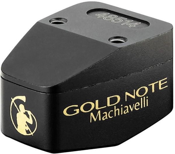 La cellule à bobine mobile Gold Note Machiavelli MkII Gold est dotée d'une pointe de lecture line contact taillée pour extraire toutes les informations et les micro détails du sillon des disques vinyle. Grâce à sa forme étudiée pour offrir la plus large surface de contact possible, notamment dans le fond du sillon, la cellule Gold Note Machiavelli MkII Gold restitue les harmoniques et les très hautes fréquences avec beaucoup de naturel et sans dureté. Le diamant de la cellule Gold Note Machiavelli MkII Gold est monté sur un cantilever en bore. Ce matériau utlra rigide permet d'absorber efficacement les vibrations et résonances indésirables responsables de la distorsion et de la perte d'information, tout en optimisant la transmission des informations lues par le diamant. La bobine en cuivre OFC très pur est quant à elle associée à un puissant aimant en samarium-cobalt pour produire un signal fidèle et ultra précis et retranscrire toutes les nuances qui donnent vie à la musique.