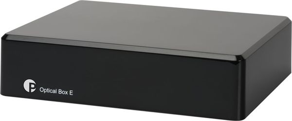 Le principal point fort du préampli phono Pro-Ject Optical Box E Phono est sa connectique. En effet, celui-ci intègre les traditionnelles entrée RCA et une sortie ligne mini-jack 3,5 mm. Pour davantage de polyvalence, ce préampli dispose également d'une sortie optique. Ainsi, il permet d'associer une platine vinyle à un appareil audio comprenant seulement une connectique numérique, comme une barre de son par exemple. Il est capable de convertir le signal analogique en un signal numérique avec un taux d'échantillonnage 24 bits / 96 kHz.