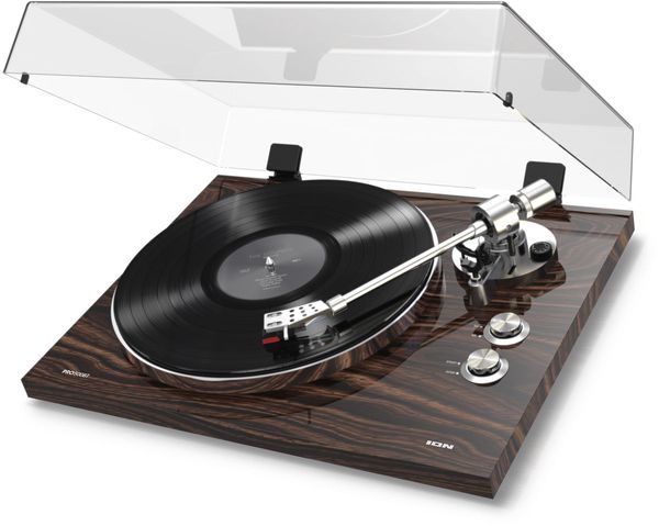 La platine vinyle Ion Pro500BT offre plusieurs fonctions aux amateurs de disques vinyle et permet en premier lieu de lire les disques 33t et 45t. Conçue avec soin dans une démarche audiophile, elle adopte un châssis massif anti-résonance plaqué noyer, un moteur découplé silencieux, un plateau en aluminium moulé sous pression ainsi qu'un bras de lecture et des boutons de commande en aluminium brossé. Le bras droit adopte un porte-cellule au standard 1/2" qui accueille une cellule phono à aimant mobile. On pourra aisément en remplacer le diamant si nécessaire avec le diamant de rechange Audio-Technica ATN-95E qui est compatible.