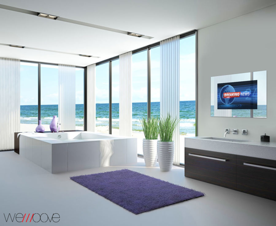 Avec sa dalle réfléchissante, le téléviseur Wemoove WM-CMTV322HEVC est idéal pour remplacer le miroir de la salle de bain. Sa certification IP55 lui assure alors de résister à l’humidité et aux projections d’eau.