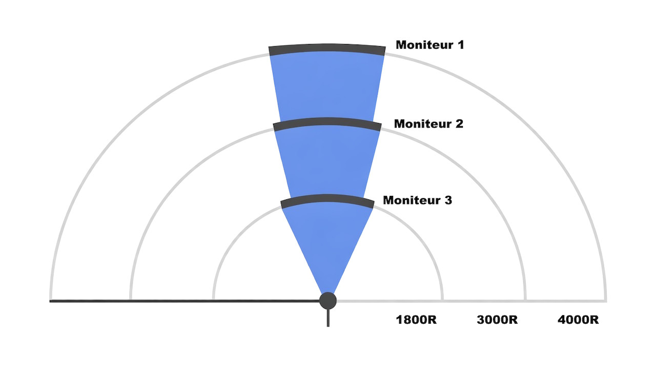 La valeur en “R” indique le rayon du cercle imaginaire formé par la courbure de l’écran. Elle permet aussi d’estimer la distance de vision idéale entre l’utilisateur et le moniteur.
