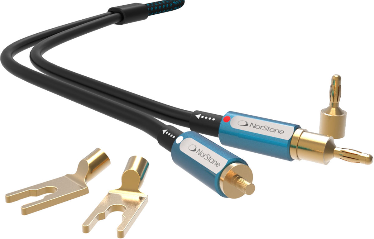 Les connecteurs interchangeables du câble d’enceintes Norstone Skye MC sont conçus en aluminium plaqué or 24K pour assurer un contact optimal avec les borniers de l’ampli et des enceintes.