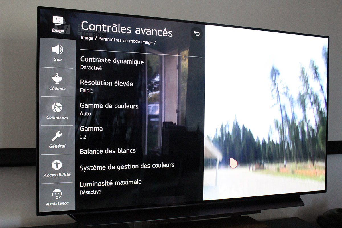 Un petit tour dans le menu de réglage des paramètres de l’image s’impose pour éviter le phénomène de solarisation des dégradés de couleurs.