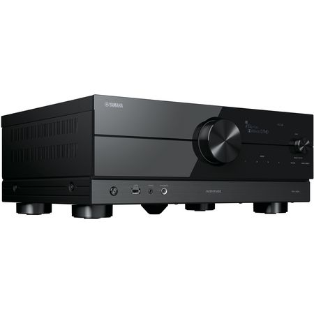 Un caisson de basses Elipson Prestige Subwoofer 12.1, un vidéoprojecteur ViewSonic M10e + un écran Lumene Embassy HD 200C, une barre de son Samsung HW-Q995D et un ampli Yamaha RX-A2A.