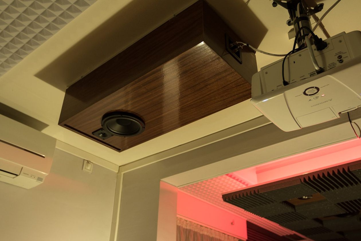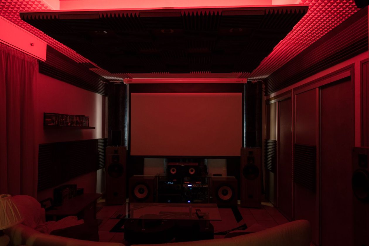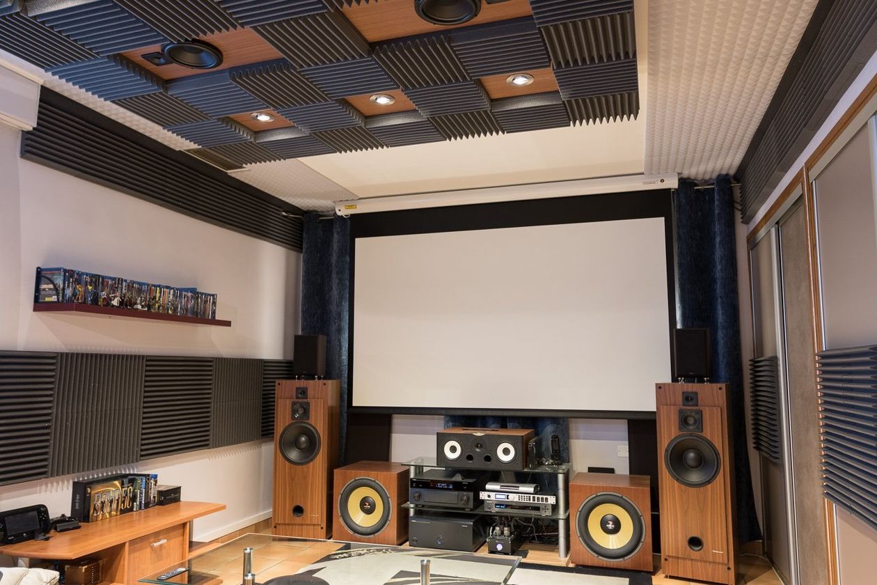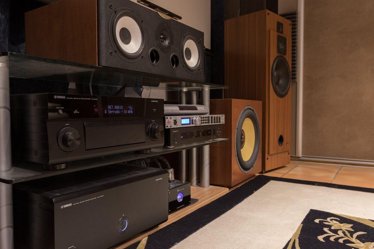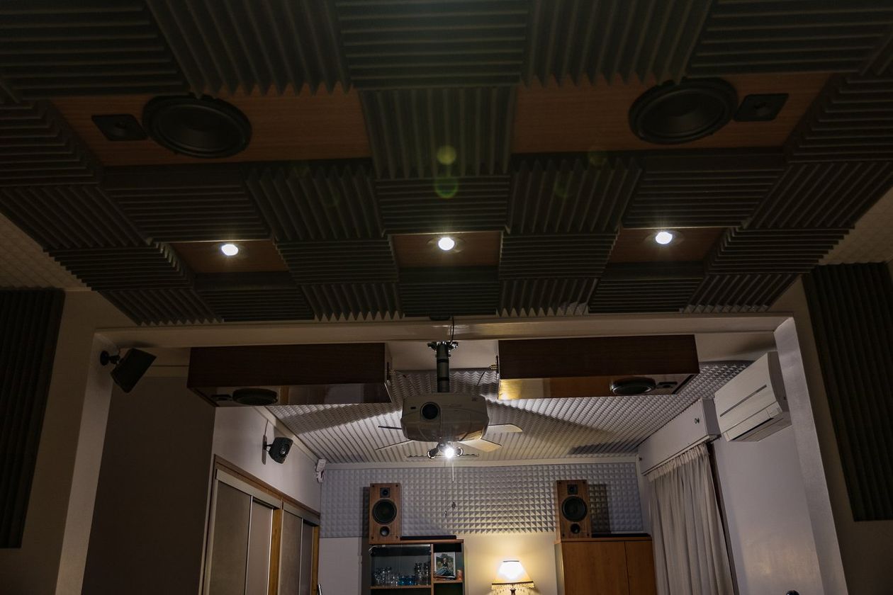 Réussir le challenge d'une installation aussi performante pour le cinéma que la hi-fi multi-canaux. Réalisation sur mesure d'un faux plafond en bois intégrant un volume calculé et cloisonné ainsi que des coffrets pour intégrer des kits de Cabasse Chaloupe dans une utilisation Atmos. Réalisation sur mesure de 2 caissons en bois plaqué et vernis accueillant des Focal 40KX et dont la gestion est dédiée à du matériel de sonorisation professionnelle (2 kW max de grave). Système bénéficiant d'un traitement du signal aussi abouti que l'énergie démesurée dont il dispose (jusqu'à 129 dB). Traitement acoustique de la pièce pour gommer les réponses indésirables du local compte tenu de l'information musicale très riche fournie par le système.