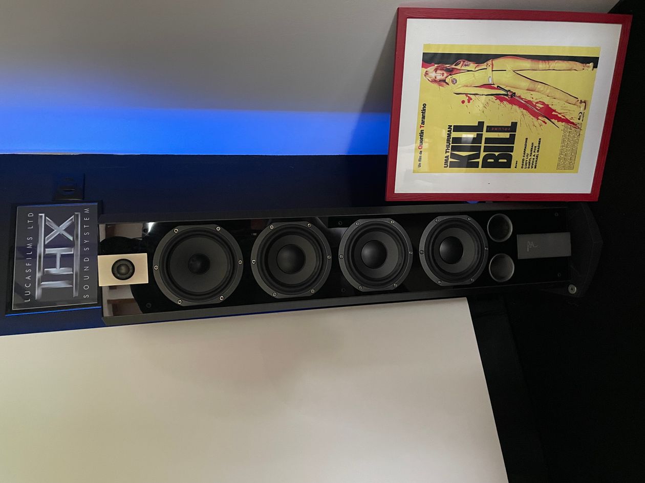 Cette installation possède cinq points forts. Premièrement, la taille de l'écran. De toutes les installations que j'ai visitées jusqu'à maintenant, c'est la plus grande : près de 4,1 m de diagonale ! En second lieu, le vidéoprojecteur Optoma ThemeScene HD-65 branché en HDMI qui offre une qualité d'image époustouflante. Troisièmement, les colonnes avant Focal JmLab 836V de la gamme Chorus, qui délivrent