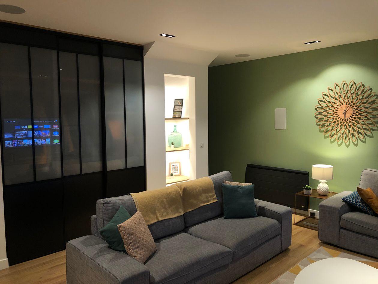 Le salon et le reste de la maison sont pilotés en multiroom par l'application HEOS de Denon & Marantz, soit via les téléphones ou tablettes, soit à la voix via Alexa d'Amazon.