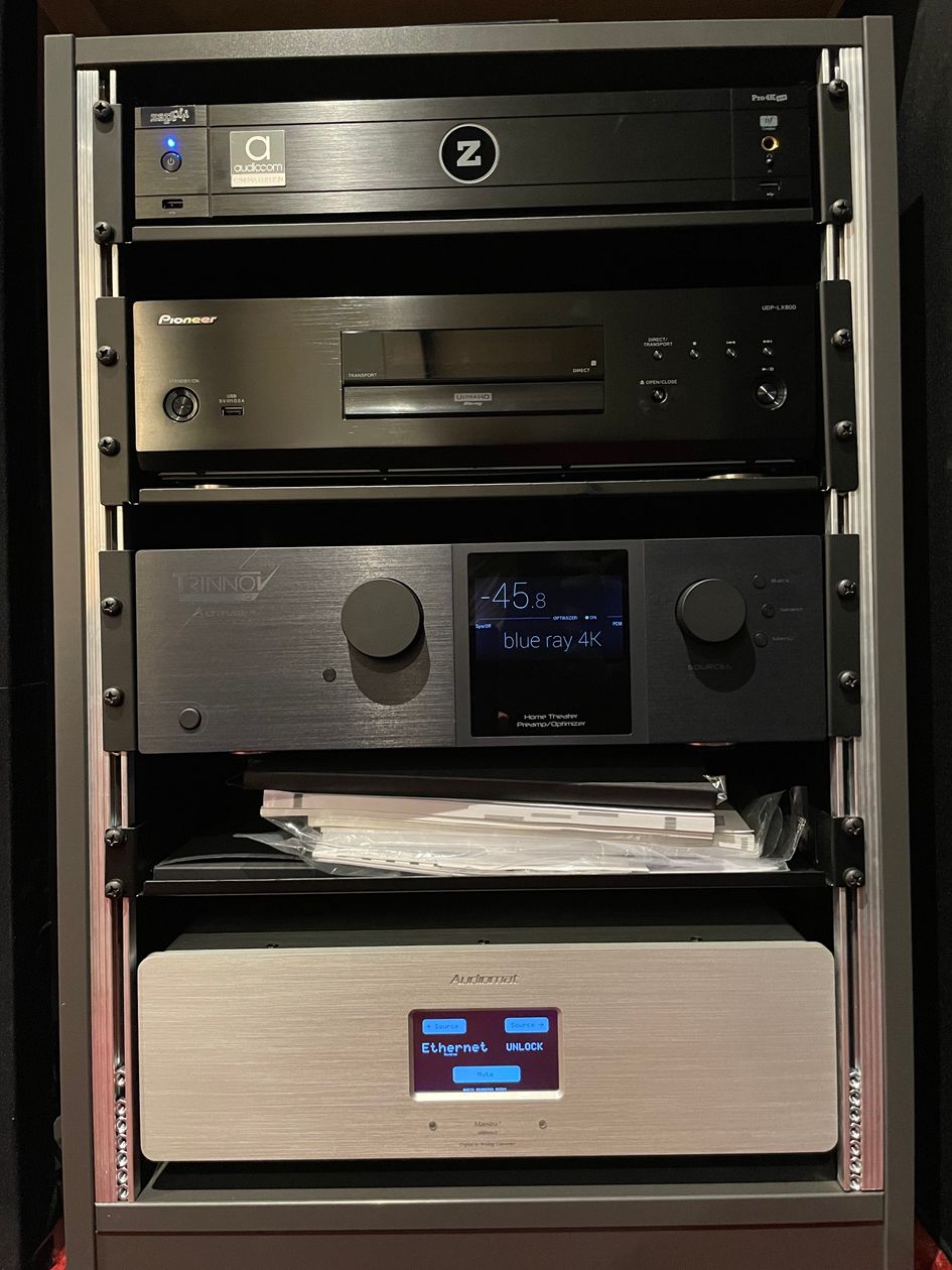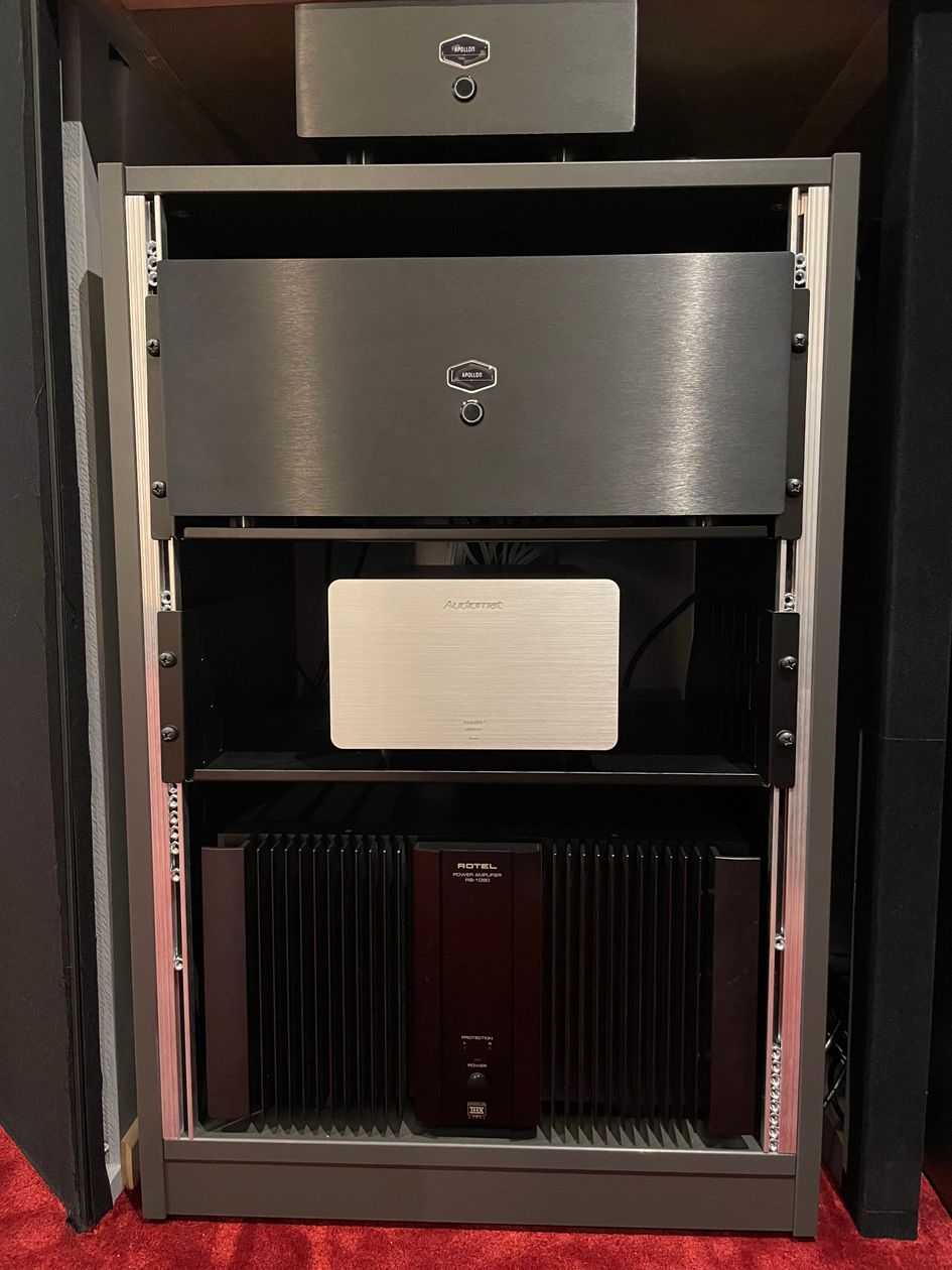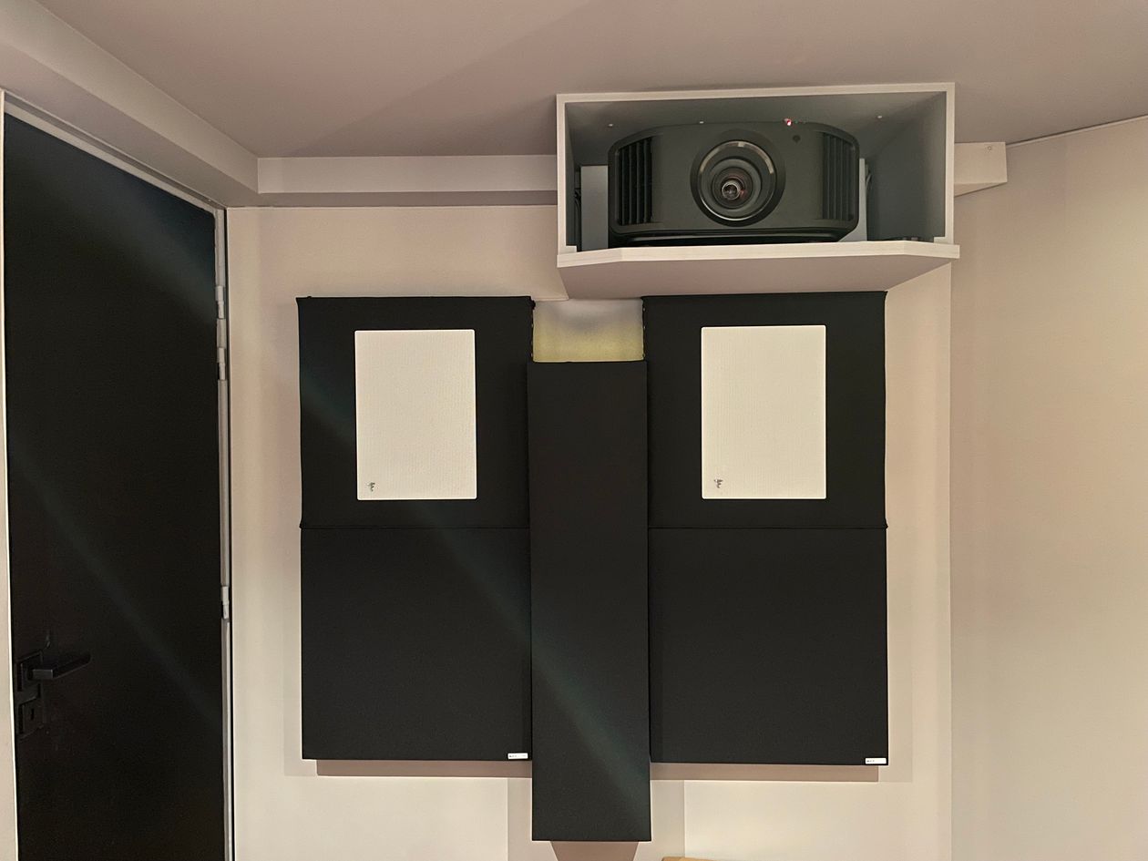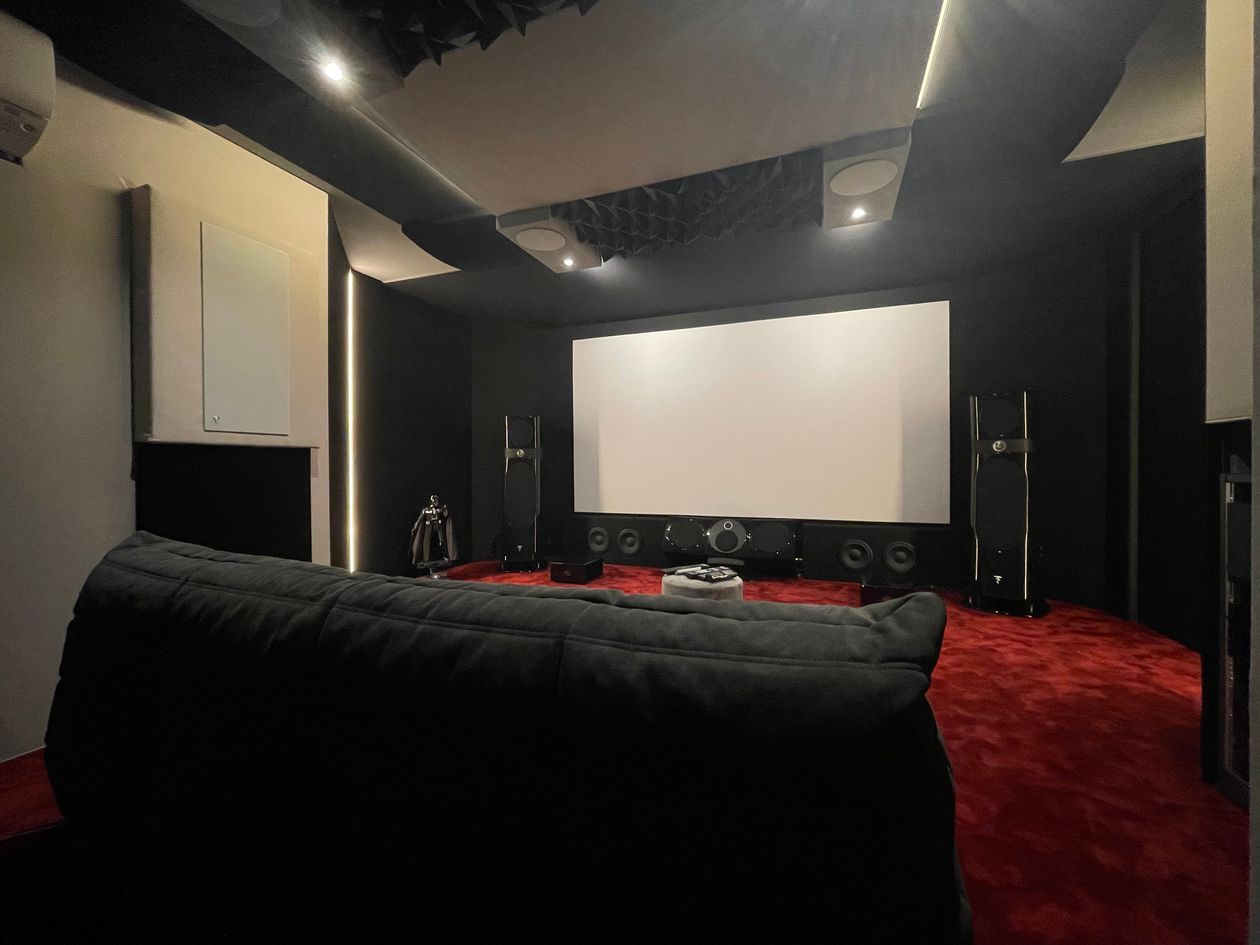 Système conjuguant qualité hifi et home-cinéma dans une pièce dédiée dès la construction de la maison et pour cela, isolée et traitée acoustiquement ! Tentative de conjuguer deux mondes qui ne sont pas forcement compatible l'un avec l'autre, l'audiophile et le home cinema...