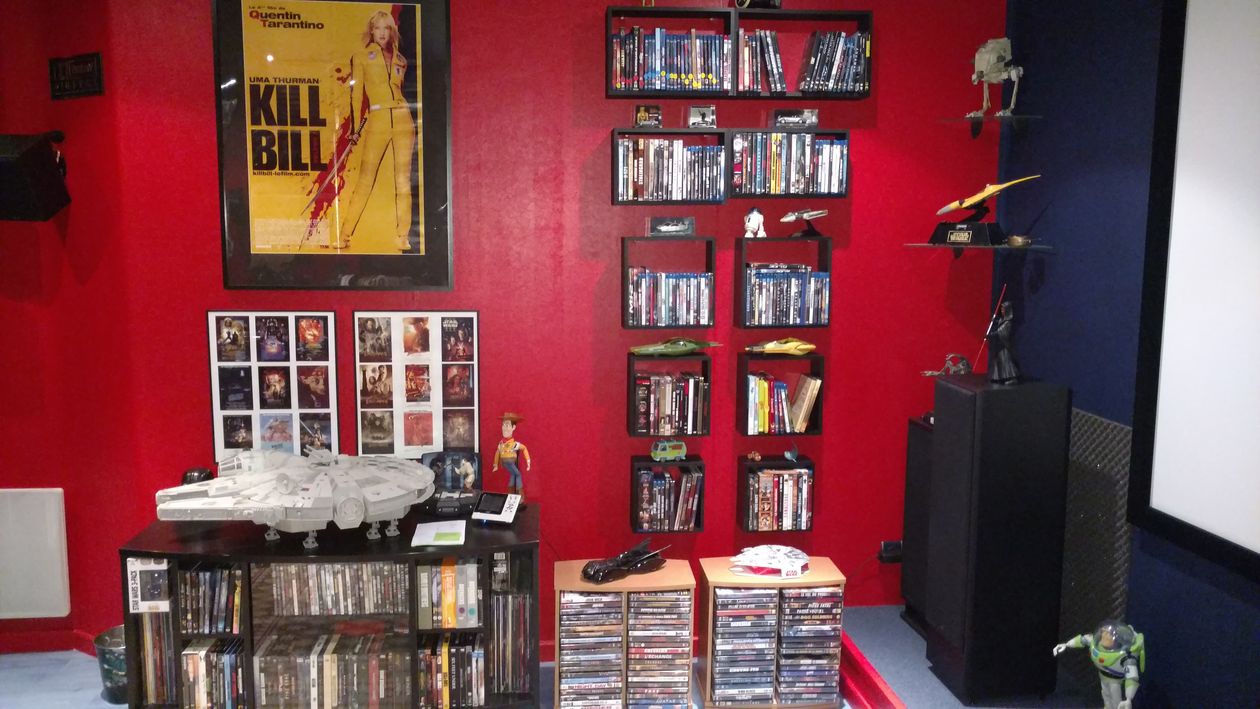 Quant au matériel : ampli, enceintes, lecteurs (LDP + BDP ) et projecteur, télécommande, et même le divan spécial 3 places, il a évolué au fil des ans, petit à petit. La seule erreur que j’ai commise, c’est qu’à l’époque où je l'ai construite je n’ai pas pensé à pré équiper ma salle pour la connexion internet. C’est donc maintenant que je suis à la retraite que je vais me pencher sur la question. Ce qui ne m’empêche pas d’en profiter quasiment tous les jours où je suis chez moi.